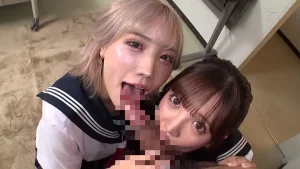単位不足に悩むギャルJK二人が、卒業のためにエッチで誘惑してくる完全主観作品。 制服・ブルマ・スク水・セーラーなど、コスプレ風のフェチ衣装を着たまま様々なプレイを展開。 乳首責め、ローション手コキ、素股、JOIオナサポと豊富なシーン構成で、視覚と聴覚を同時に刺激してくる。 息の合ったコンビネーションと高い着衣率で、没入感をとことん味わえる1本。